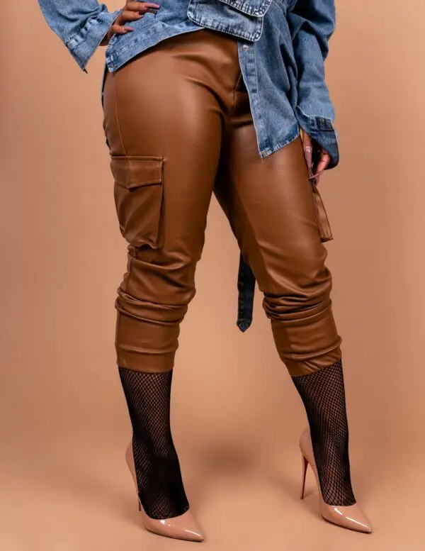 Pu side patch pockets cargo pants Fabric: Not Specified